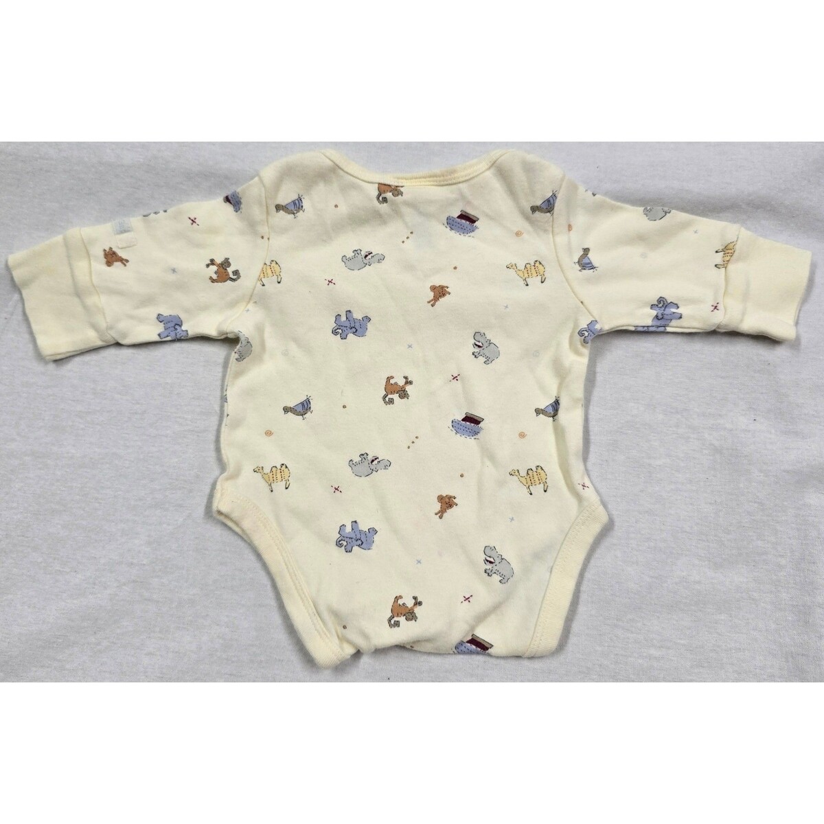 Baby Gap Newborn Noahs Ark Print Long Sleeve Cotton Bodysuit Cream 0-3 Y2K VTG