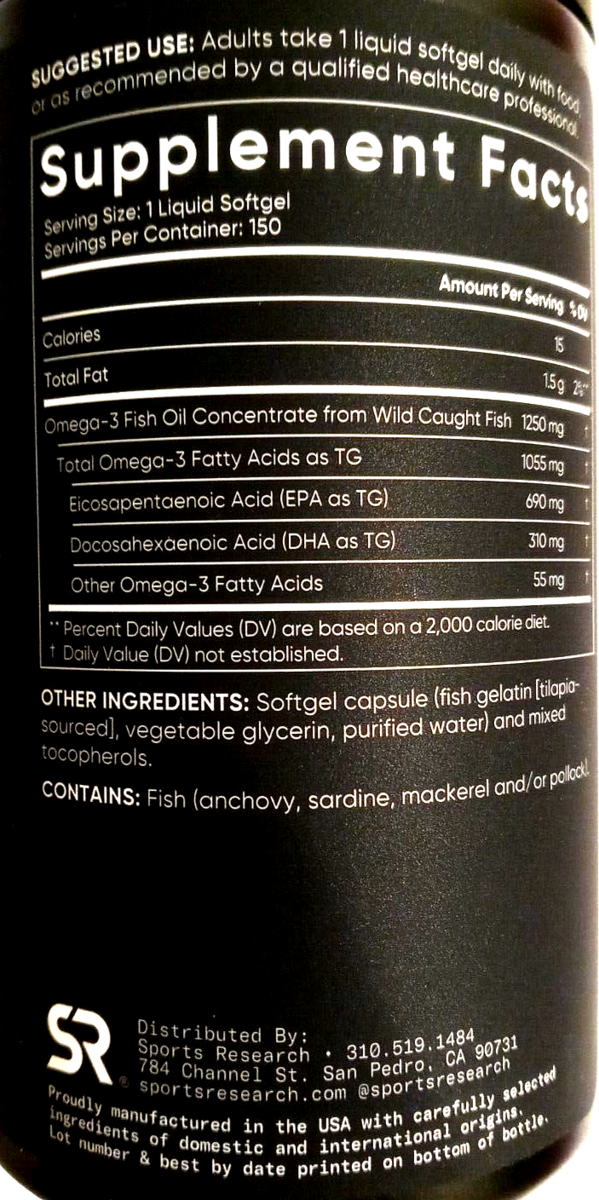 Sports Research Triple Strength Omega-3 Fish Oil 150 Softgels EXP 04/2027