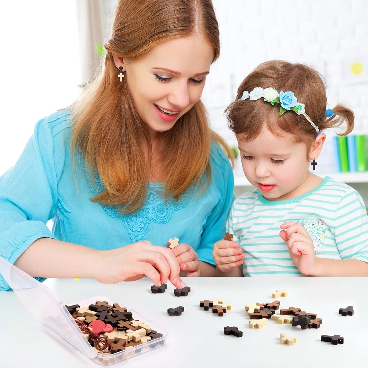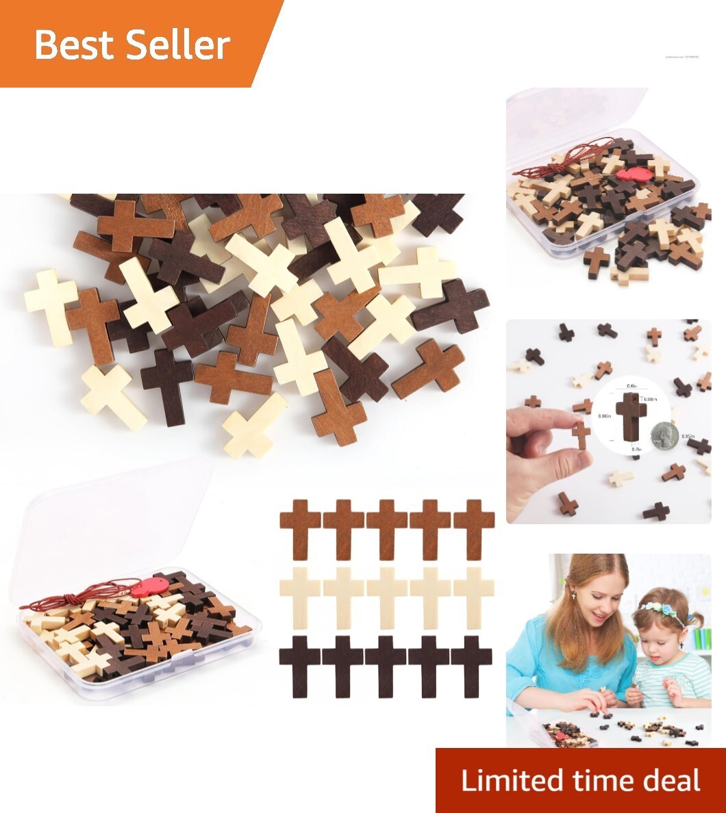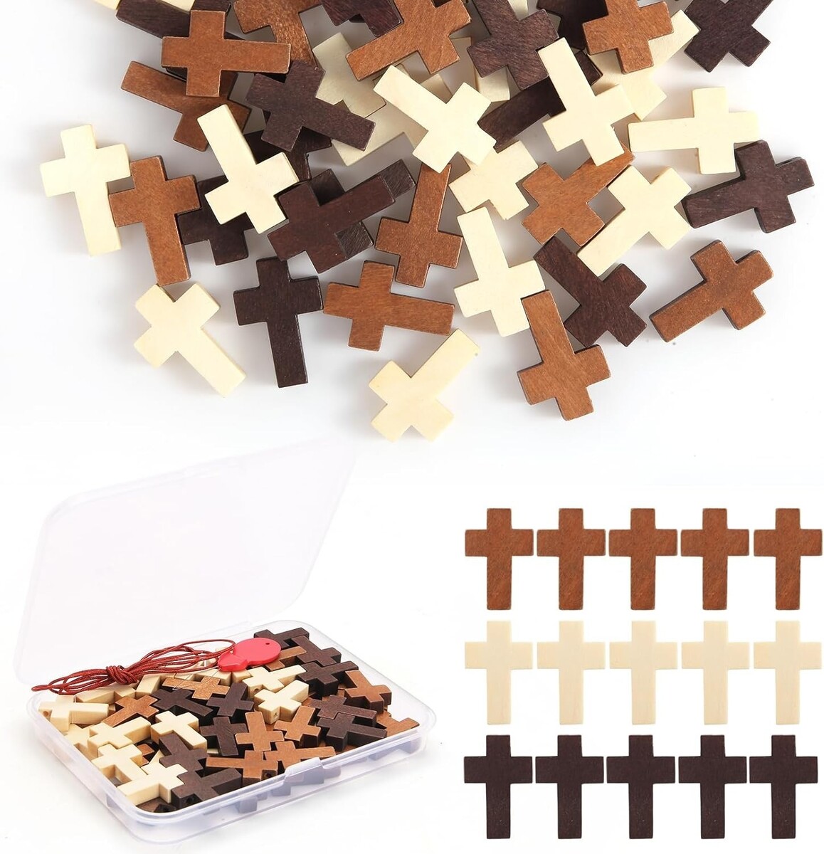 Transform your crafting experience with our pack of mini wooden crosses, available in sets of 50, 120, or 200 pieces. Each set features an exquisite selection of light brown, dark brown, and cream-colored wooden crosses, perfect for creating heartfelt gifts and decorative pieces that resonate with your Christian faith.