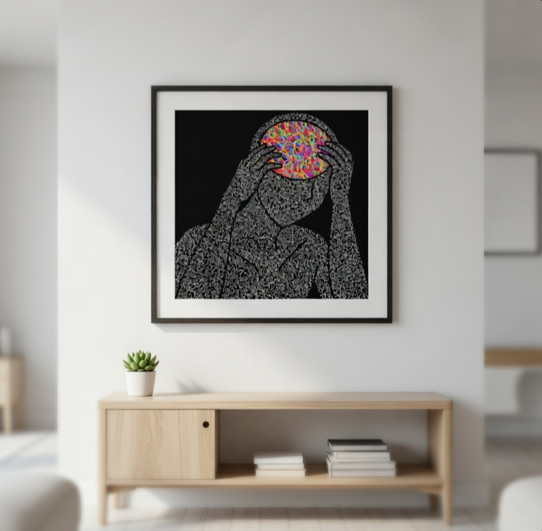 My Mindโs A Mess shows the struggle of being trapped inside oneโs own thoughts. The faceless figure is covered in dull, tangled lines, reflecting how heavy and exhausting the inner self feels, while the mind bursts with loud, messy colors that refuse to settle. It captures the feeling of trying to hold yourself together as your thoughts race, overlap, and overwhelm, making it hard to find calm or clarity.