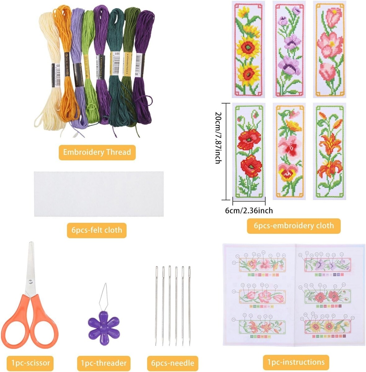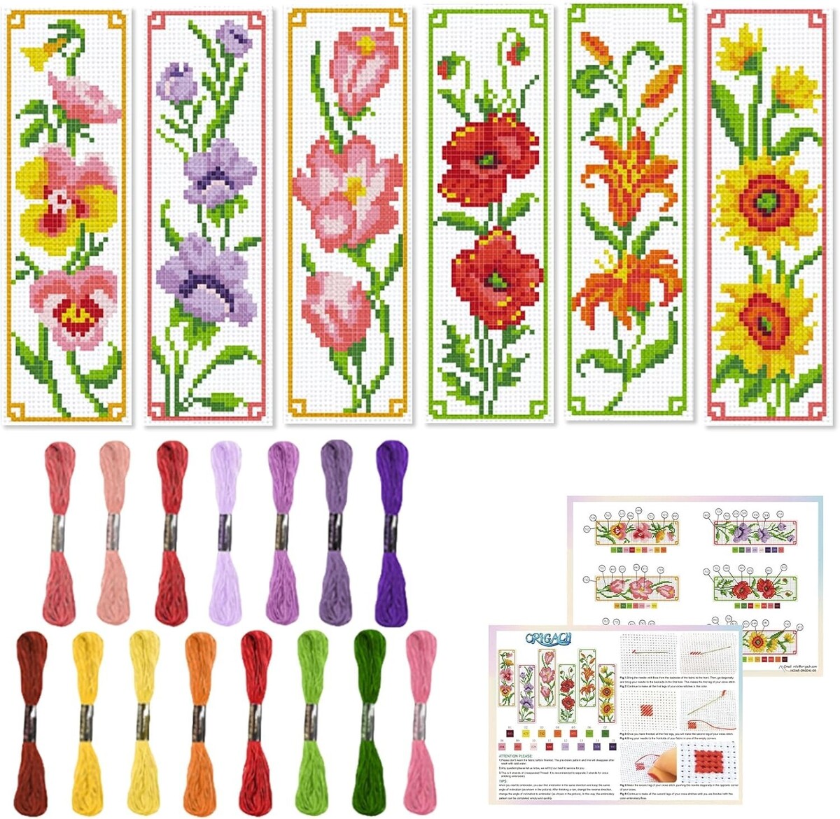 DIY 6 Flower Pattern Embroidery Bookmarks Kit