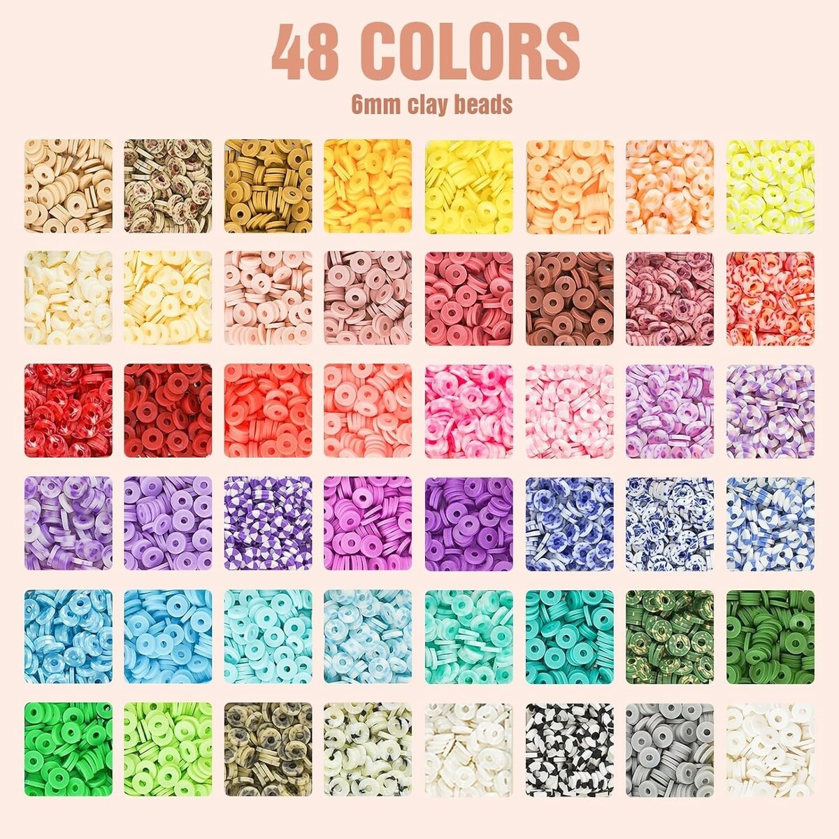 Crafted from healthy, environmentally friendly materials, our clay beads are light, durable, and comfortable to the touch. Waterproof and resistant to fading, these beads can be worn all day long?including during bath time or swimming! Completely safe for ages 6+, allowing you to use them with complete peace of mind.
