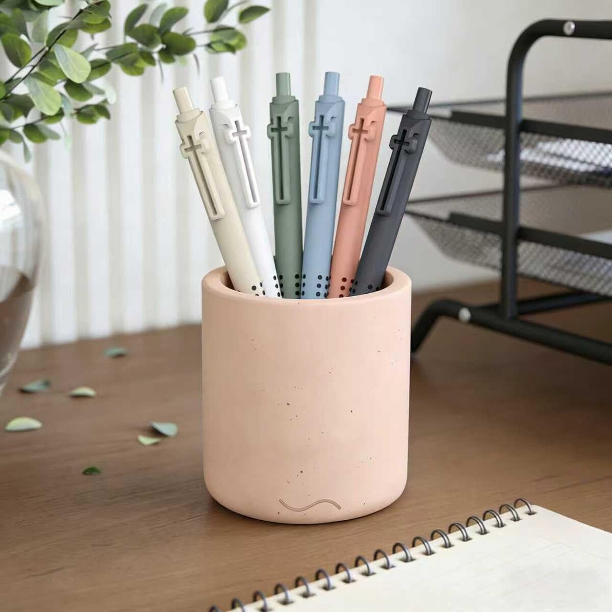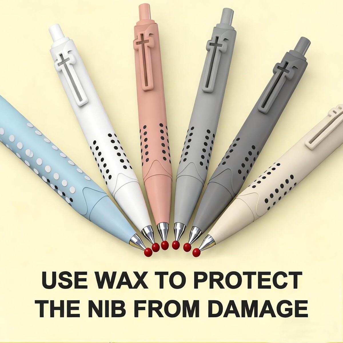 Distinctive cross-shaped clips add a religious-themed decorative touch while securely fastening the pen to pockets or notebooks.