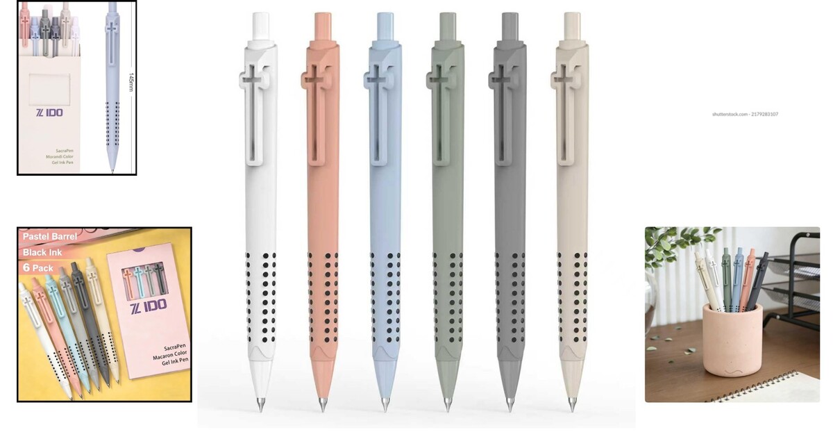 6 Pack Gel Pens with Cross Clips – Stylish Christian Writing Instruments