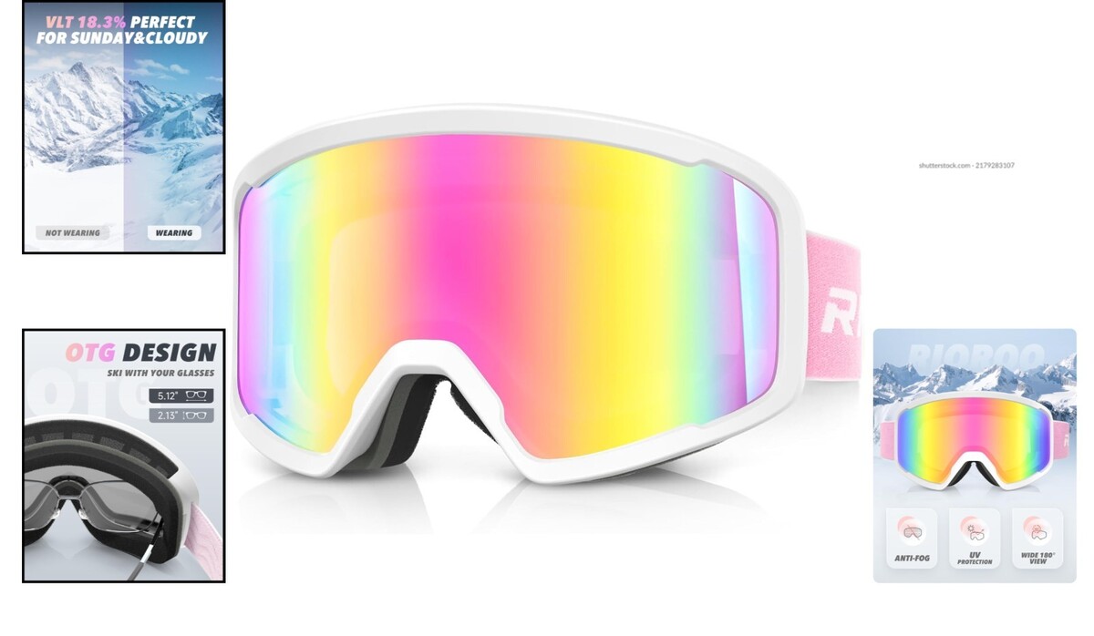 Versatile Snow Goggles for Skiing with Anti-Fog, UV Shield & Comfortable Fit