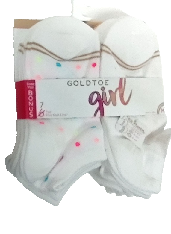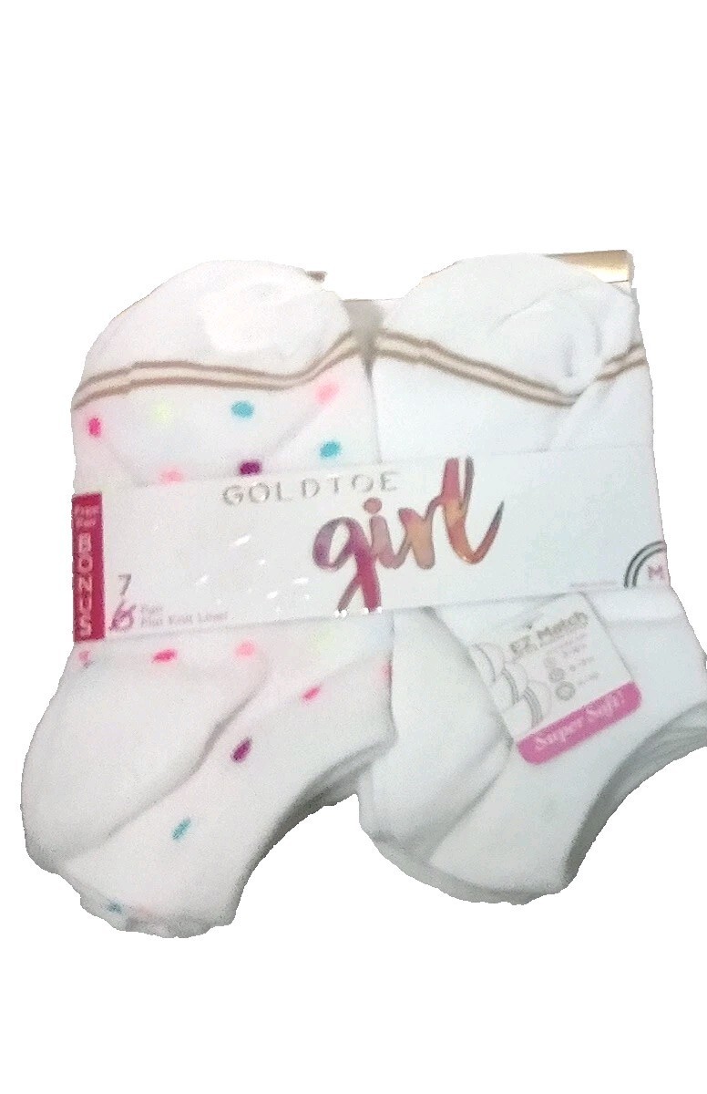 2 x 7 pairs = TOTAL 14 PAIRS Girl Gold Toe EZ Match FLAT KNIT LINER Crew Socks M Shoe Size 9-3.5 WHITE