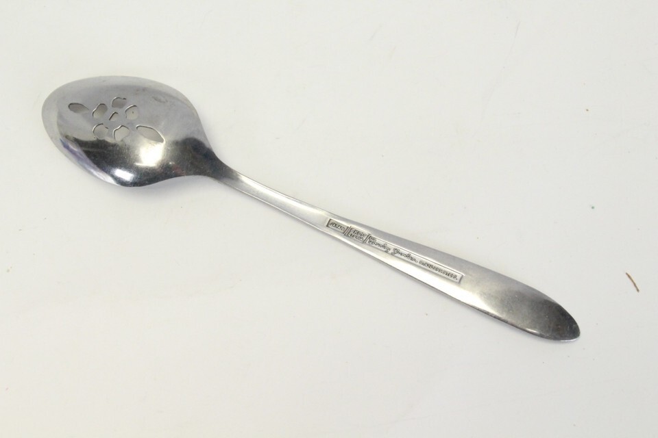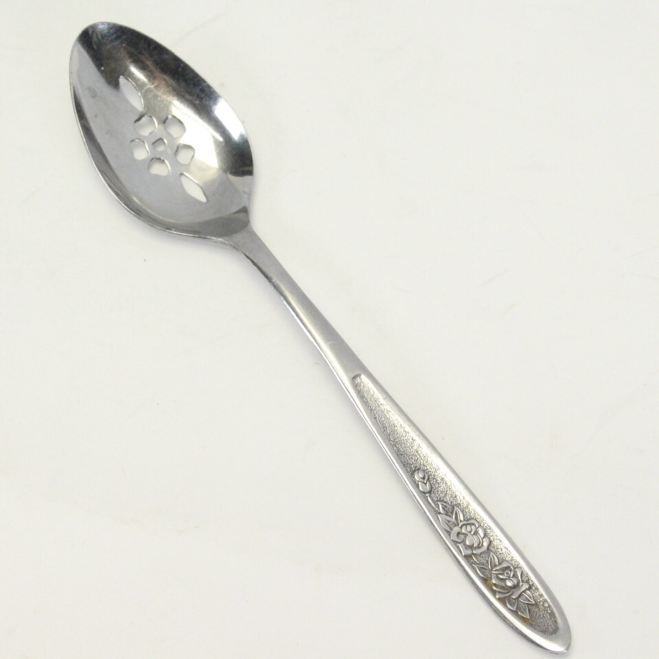 Ekco Country Garden Pierced Slotted Serving Spoon Stainless 8 1/8" Stainless
