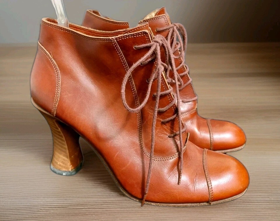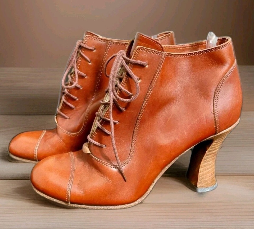 Michel Perry Victorian Steampunk French Leather EU 38/US 7.5 Cone Heel Booties