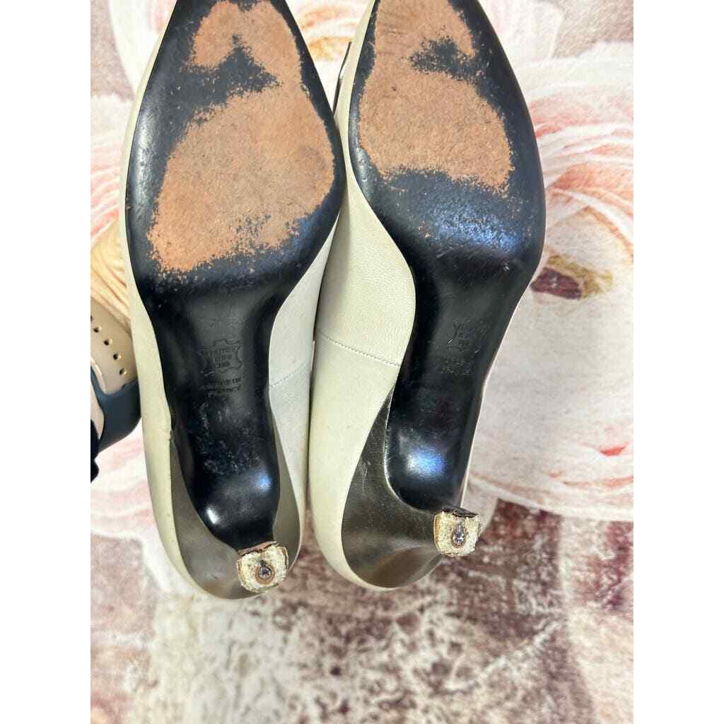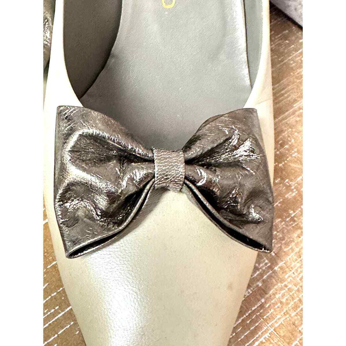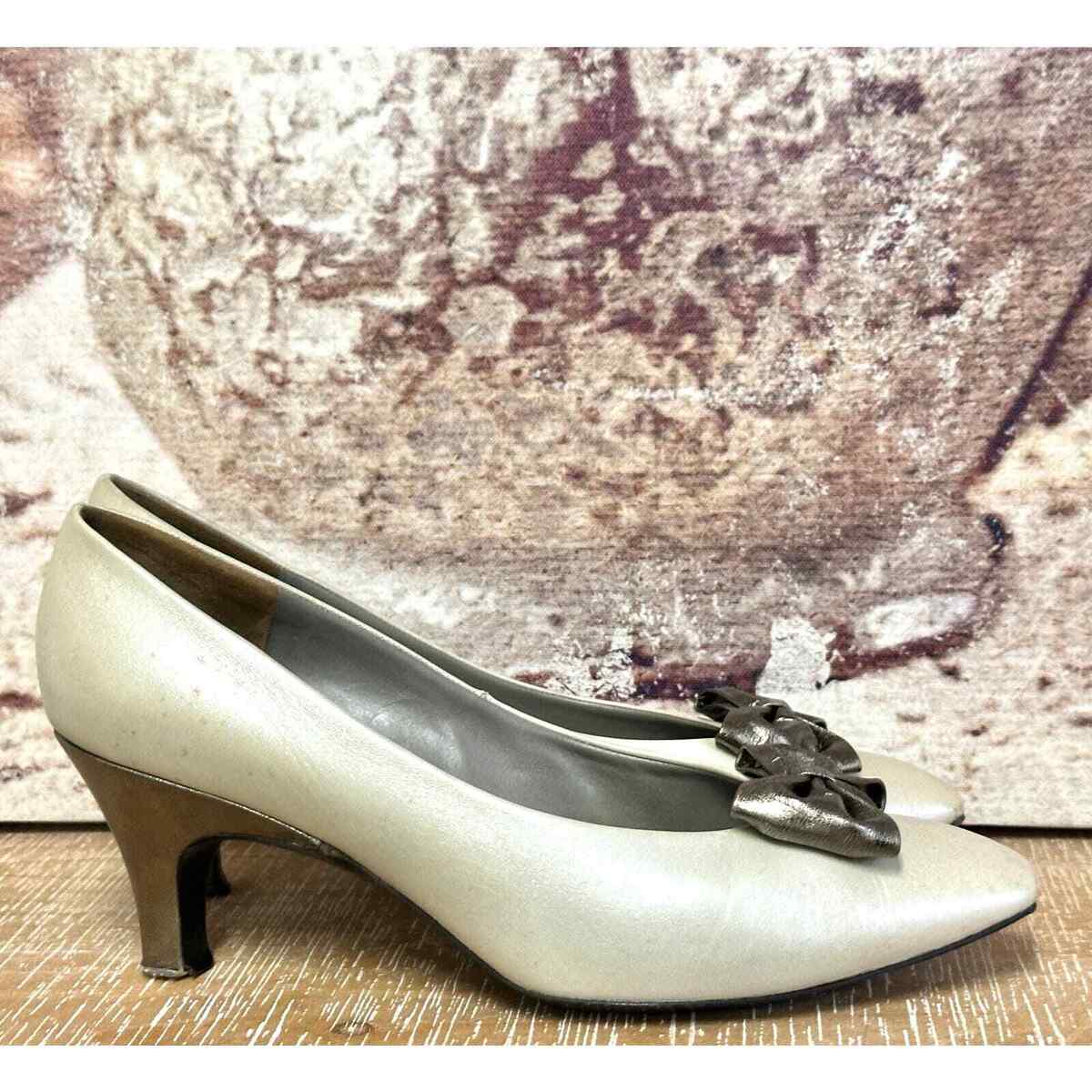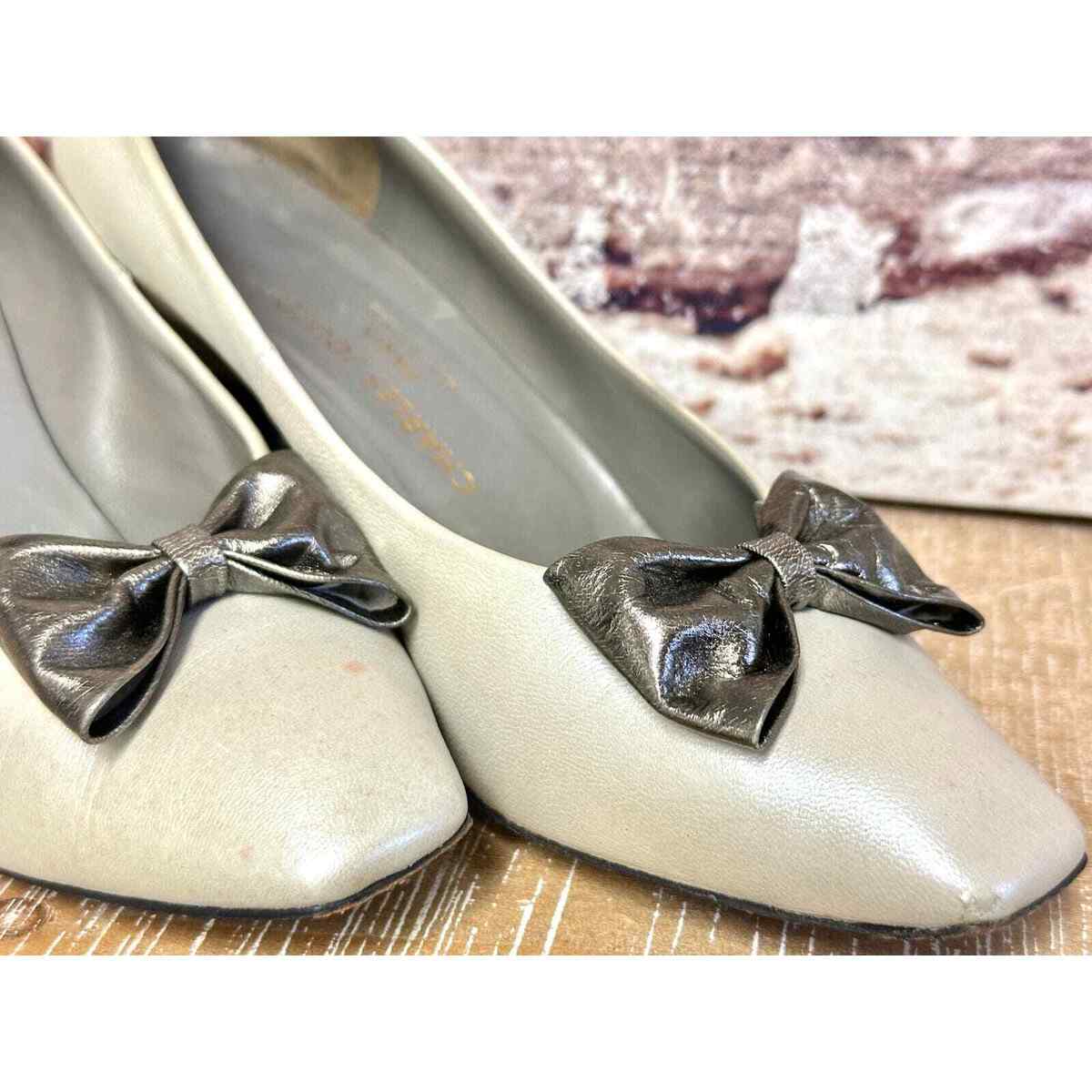 80s/90s VTG Charles Jourdan Paris Leather Pump Cream/Bronze w/ Bow 7 1/2