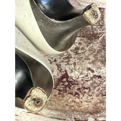 VTG Charles Jourdan Paris Leather Pump Cream/Bronze w/ Bow 7 1/2M- in good condition, flaws are some spots on the leather and the heel caps need to be replaced.