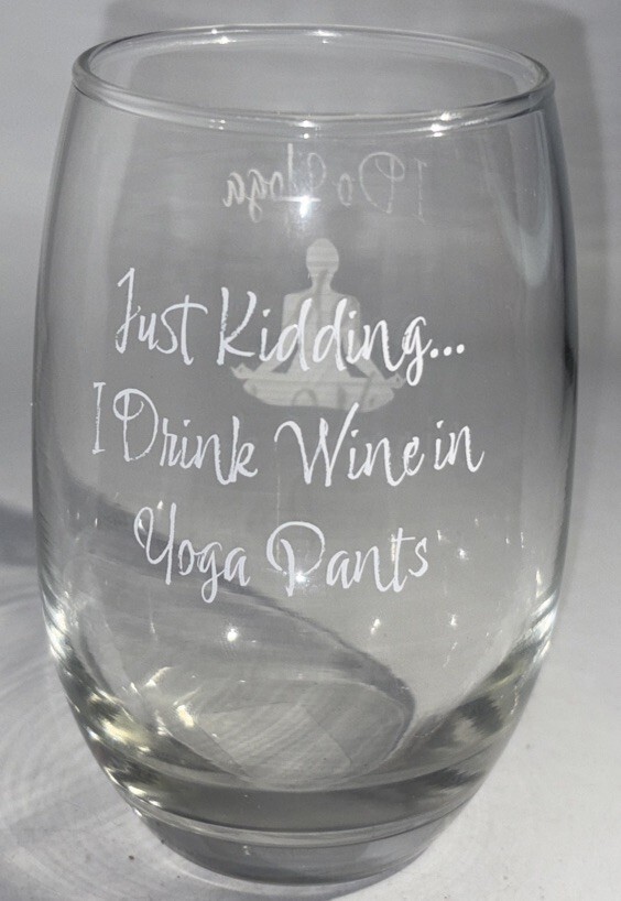 “I Do Yoga-Just Kidding..I Drink Wine In Yoga Pants”15.5oz Stemless Wine Glass