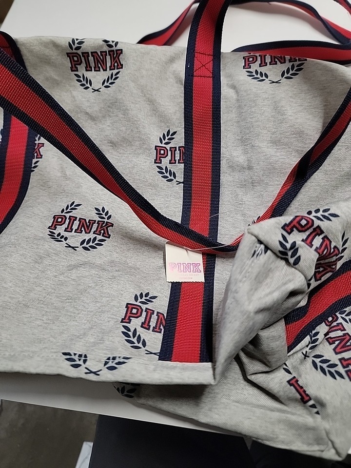 NWOT Victoria's Secret PINK Campus Logo Gray Duffle Bag