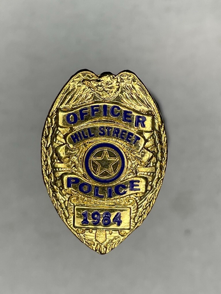 Officer Hill Street Hill Street Blues 1980's TV lapel pin police This pin meets's regulations. This pin is obsolete and is strictly for collecting. This pin has no authority.