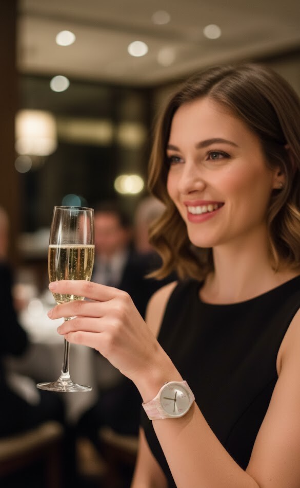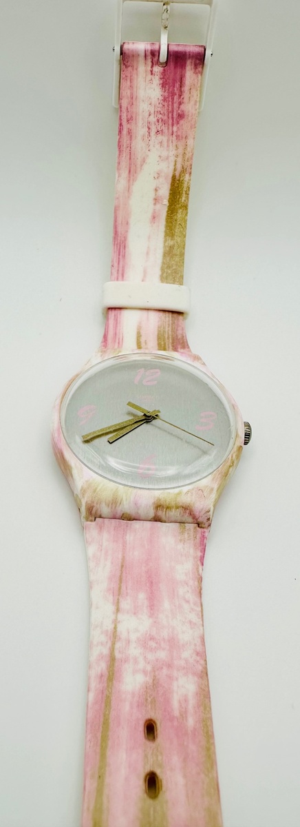 With its playful blend of soft pinks and smoky greys, this timepiece is made for those who know that style is about expression, not just function.