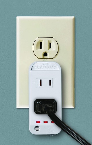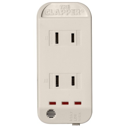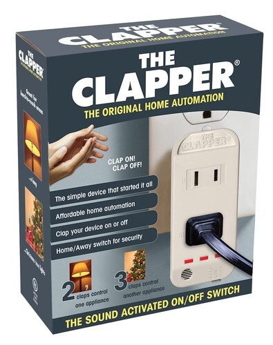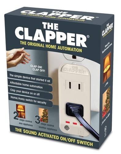 The Clapper is a device that is activated by sound sensory and will turn on or off any two appliances plugged into it. The Clapper itself is plugged into an outlet in your wall. When activated by the sound of your clapping, it will control up to two appliances and then turn them on or off, depending on the number of the times you clap. The Clapper is a sound-activated on and off switch for appliances. When in the home mode, The Clapper can operate either one or two appliances by clapping two times to activate the first appliance and three times to activate the second.
