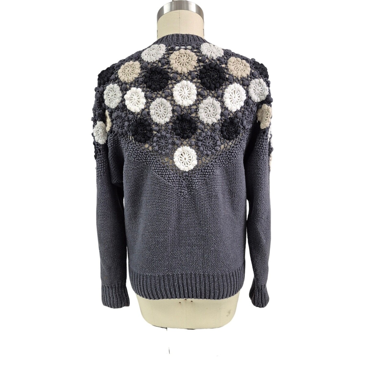 90s Y2K Spiegle Apart Gray Knit/Crocheted Rosettes Ramie Blend Cardigan Sz M