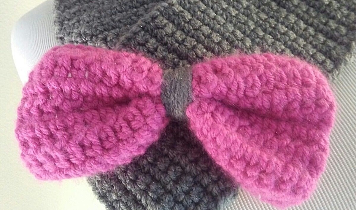 Handmade Scarf Set Matching Head Wrap Knit Ear Warmer Gray Pink Bow Closure