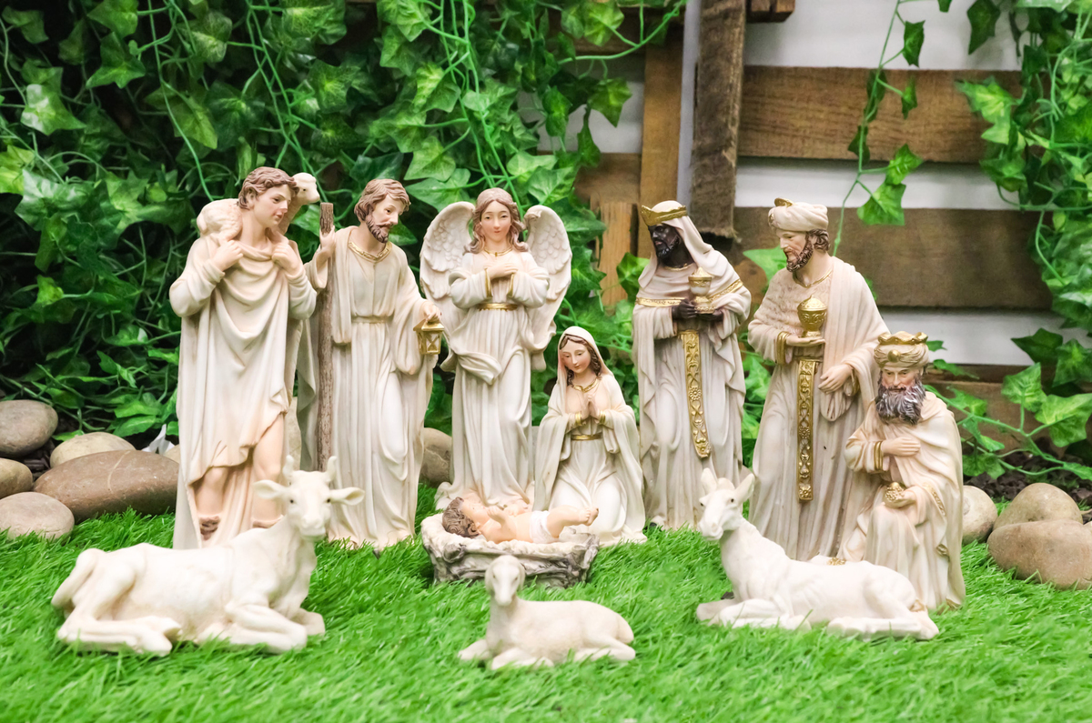 ? Celebrate the true meaning of Christmas with this beautifully crafted Nativity Set featuring Mother Mary, Saint Joseph, Baby Jesus in the manger, the Three Wise Men, angel, shepherd, and beloved stable animals. Each figurine is richly detailed with expressive features and finished in vivid, vibrant colors that bring the sacred scene to life. Expertly sculpted with reverent artistry, this complete set creates a stunning centerpiece for mantels, tabletops, or church displays.