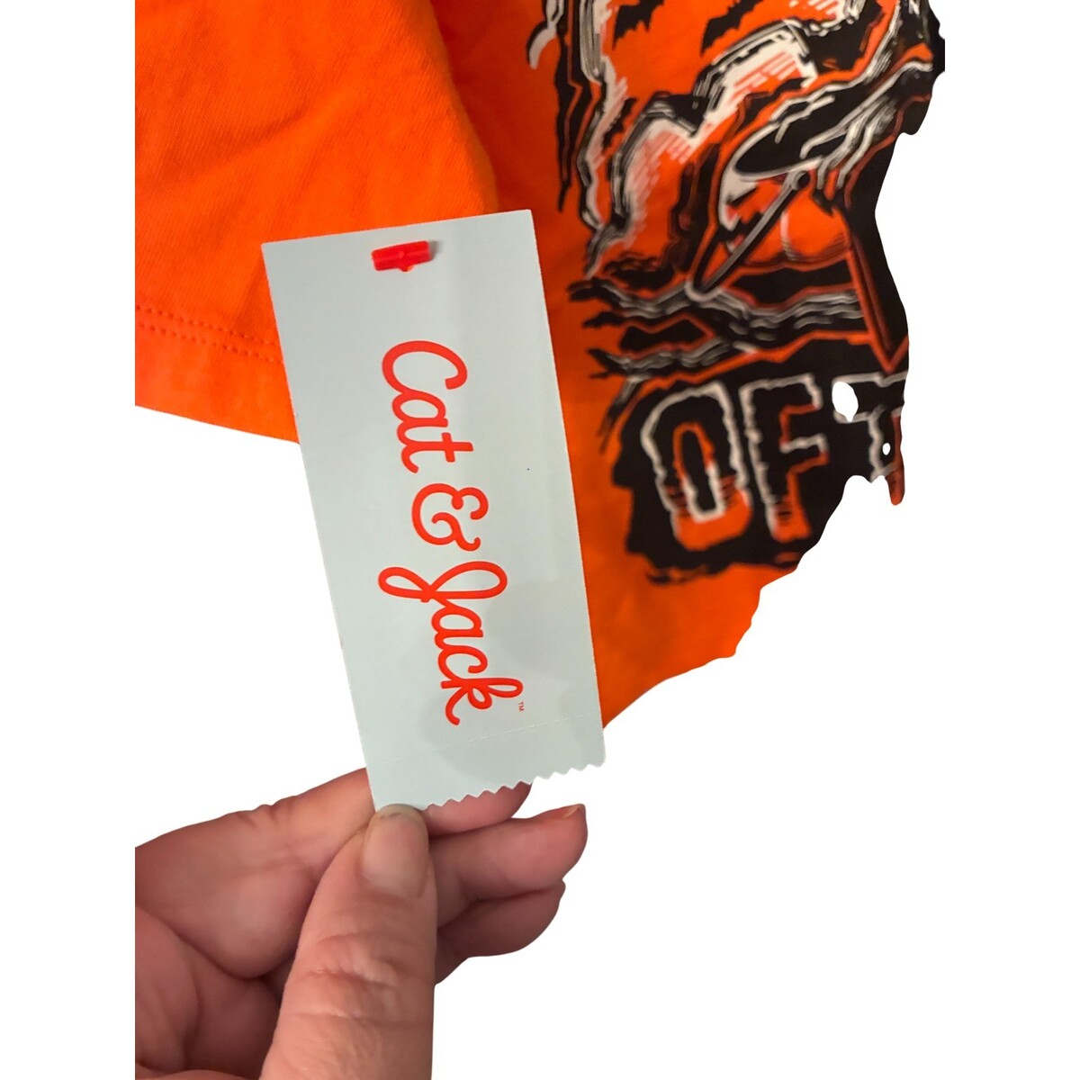 Cat & Jack Graphic T-Shirt Kids M/8 Orange Halloween Bat In Search of Treats NWT