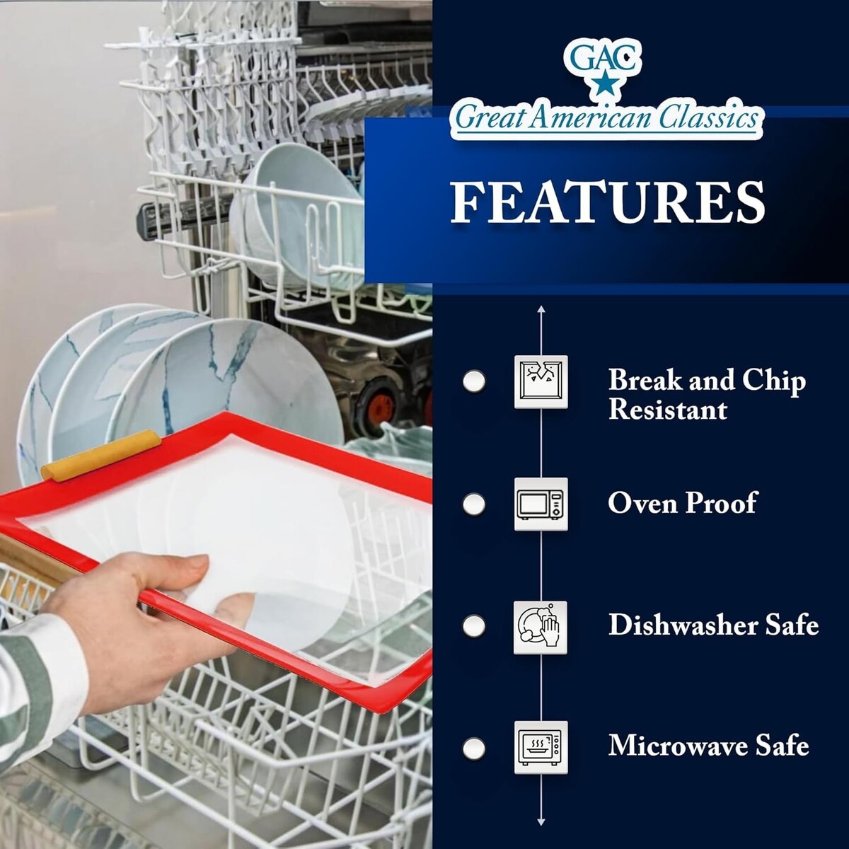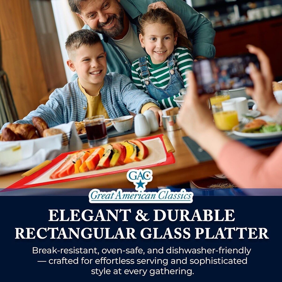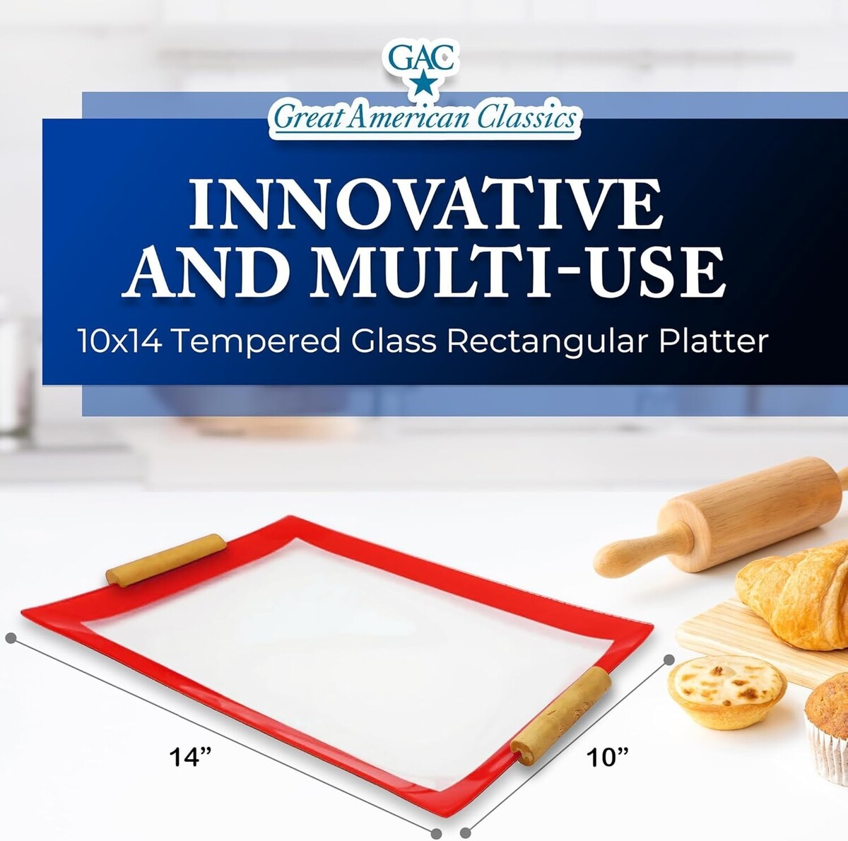 GAC 10x14 Inch Rectangular Tempered Glass Serving Platter with Wooden Handles