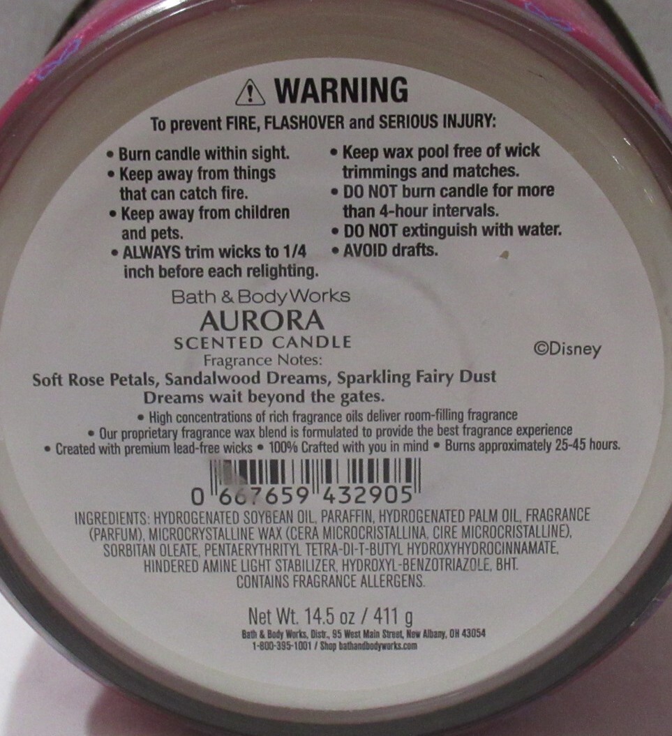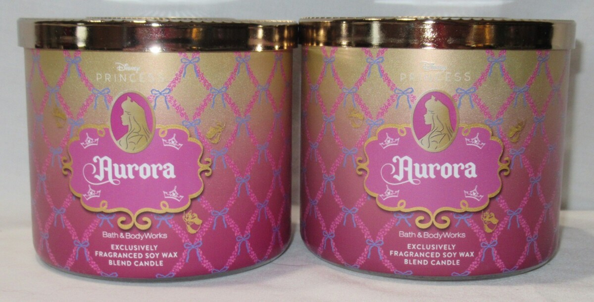 Bath & Body Works 3-wick Scented Candle Lot Set of 2 Disney Princess AURORA