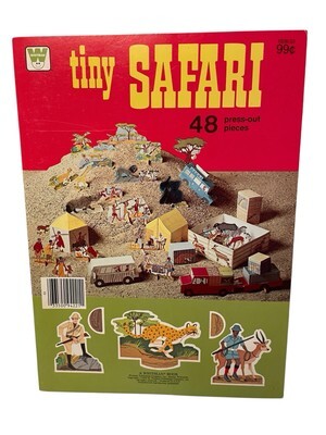 Relive the spirit of the Wild West and a Safari with this Vintage Tiny Western Rodeo and Safari press-out and assemble book from Whitman Publishing, dated 1975 and 1976. These nostalgic collectibles features a fully illustrated Western rodeo diorama, complete with cowboys, bucking broncos, bulls, wagons, rodeo stands, and more ? all ready to punch out and assemble!