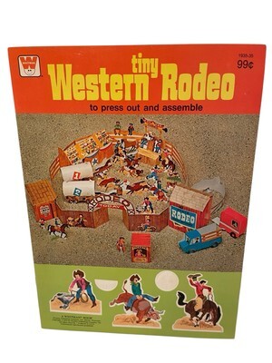 Vintage punch-out book, paper toys, 1970s Western diorama, cowboy rodeo toy, Whitman Publishing, vintage children?s activity book, retro Western decor, safari collectible paper craft, vintage ephemera, toy paper model, rodeo play set.
