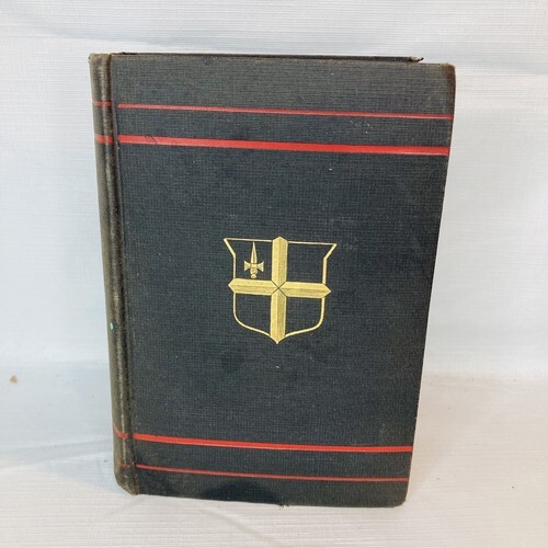 intact as are pages, though a bit loose. Wear and tear to hardcover and cloth due to age and storage. Paper loss on inside cover as shown. Some fading on cover and page edges as shown. See all photos!