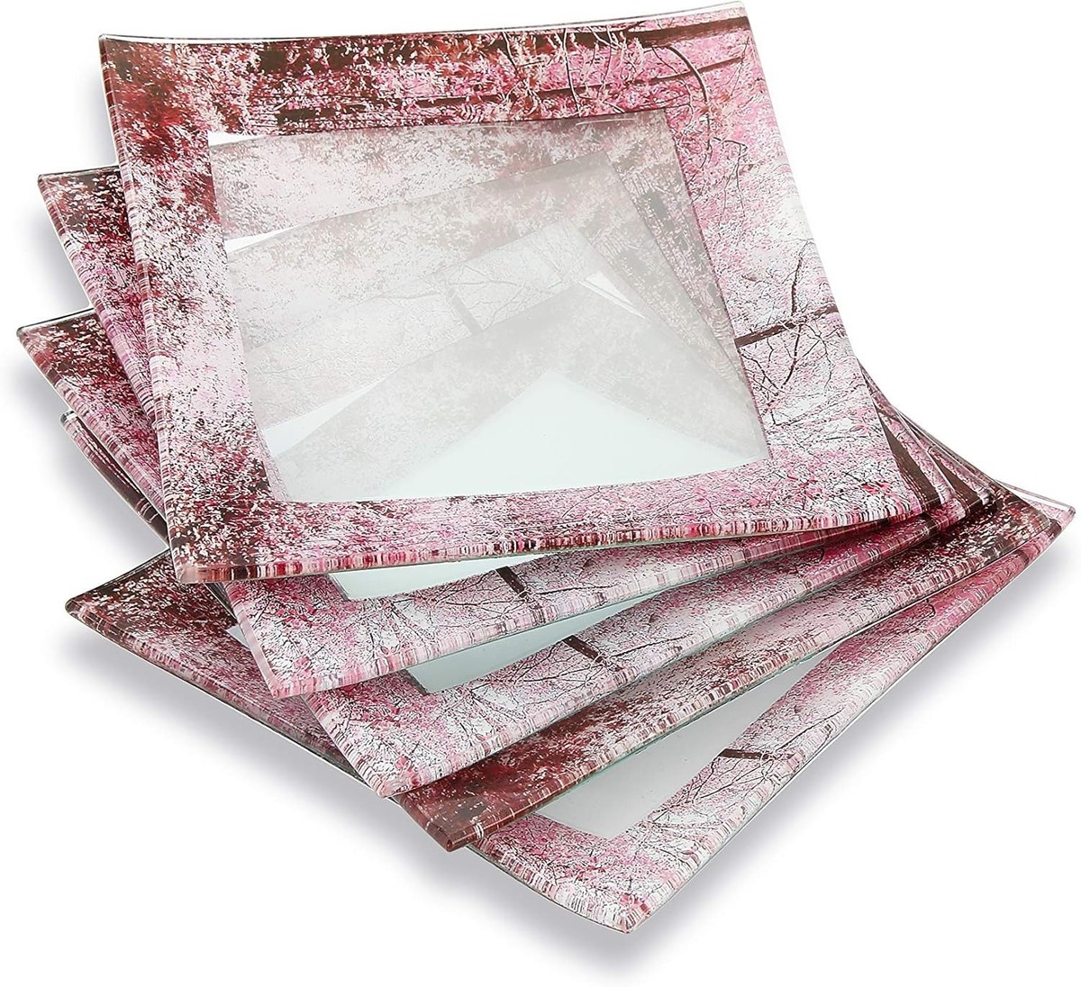GAC Unique Landscape Design Square Tempered Glass Dessert Plates(6 Inch ,Set 05)