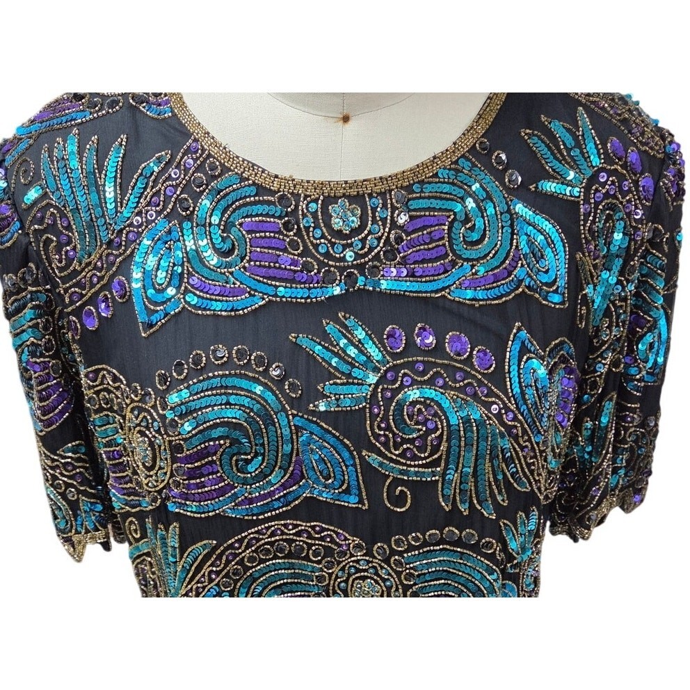 VTG 1980s Laurence Kazar Silk Beaded Sequin and 50 similar items