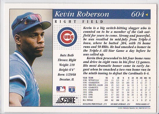 M) 1994 Score Baseball Trading Card - Kevin Roberson #604