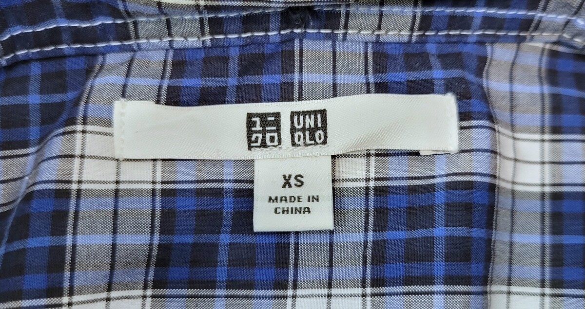 MS) Men's Uniqlo Blue Plaid Button Up Casual Long Sleeve Shirt XS