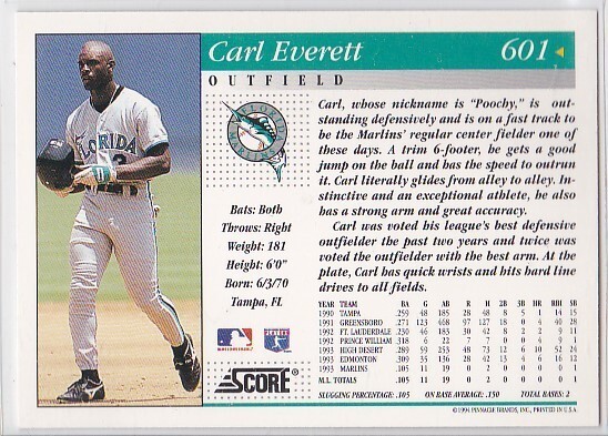 M) 1994 Score Baseball Trading Card - Carl Everett #601