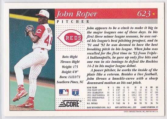 M) 1994 Score Baseball Trading Card - John Roper #623
