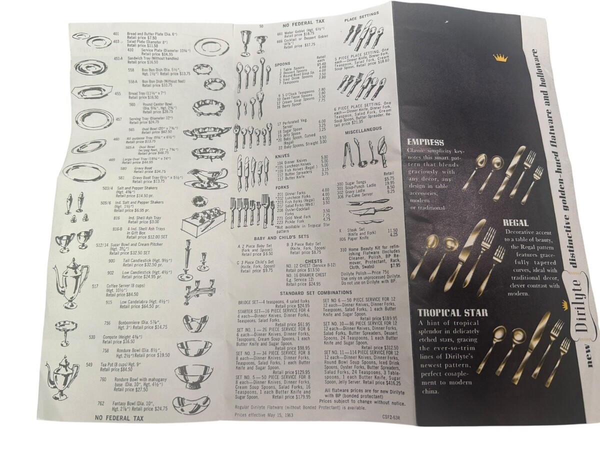 Elegant mid-century dining ensemble captures the sophisticated metallic artistry of 1950s tableware. Crafted with precision, this Dirilyte set represents a golden era of home entertaining, featuring gleaming utensils with sleek, streamlined design that epitomizes mid-century modern aesthetic. Each piece reflects meticulous craftsmanship and the era's appreciation for refined dining experiences.