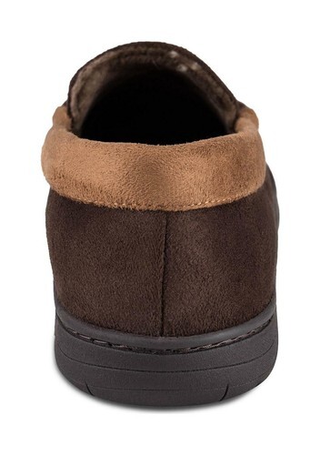 Haggar Mens Microsuede Venetian Slipper Plaid Fleece Lining Brown-L 9.5-10.5