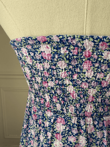 Vintage Y2K say what? Strapless peplum tunic top or mini dress. I see it more as a Y2K Juno era top because it would be incredibly short as a mini dress but if you aren?t tall, you could totally pull it off. At 5?6? tall it?s very risky. mostly cotton with a little bit of spandex, mocking across the back for stretch and lightly padded cups reducing the need for a bra. Higher waist flaring out below the bust peplum style. In Juno, she wore this style top with a cardigan and jeans, and the aesthetic is back. Laying flat measures 24 inches shoulder to hem and 12 inches armpit two armpit stretching to 16 inches without much resistance and 12 inches straight across the waist. Featured on my size small dress form, however, it?s worth noting that it is a little snug so I would estimate this to be approximately a junior small or women?s extra small but please double check measurements to ensure the proper fit for you.