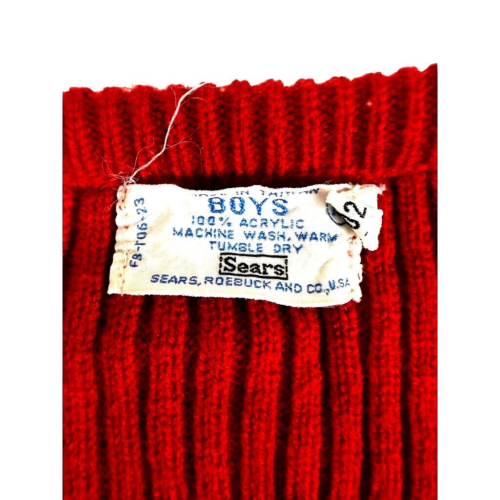 VTG 1970s Sears Boys Red Ribbed Sweater Vest Mod Disco Size 10