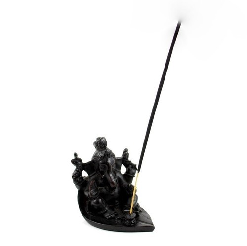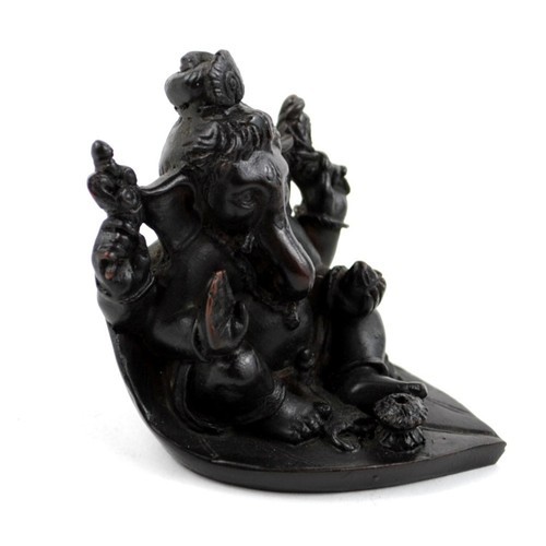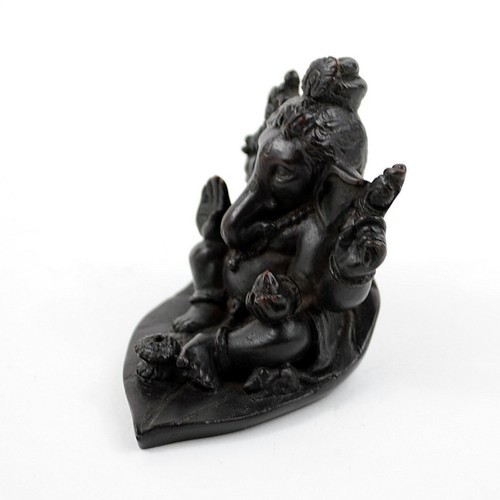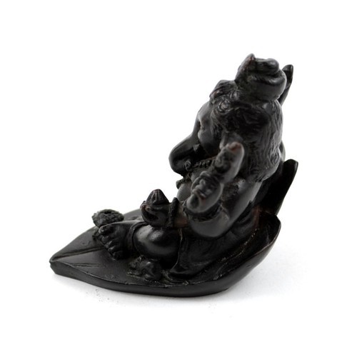 GANESHA ON LEAF INCENSE BURNER 2.25" Hindu Elephant God NEW Dark Resin Ganesh