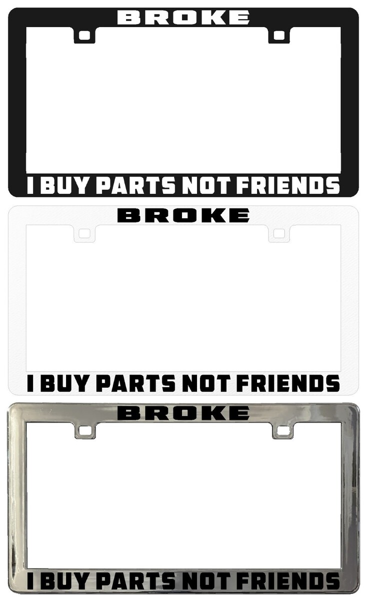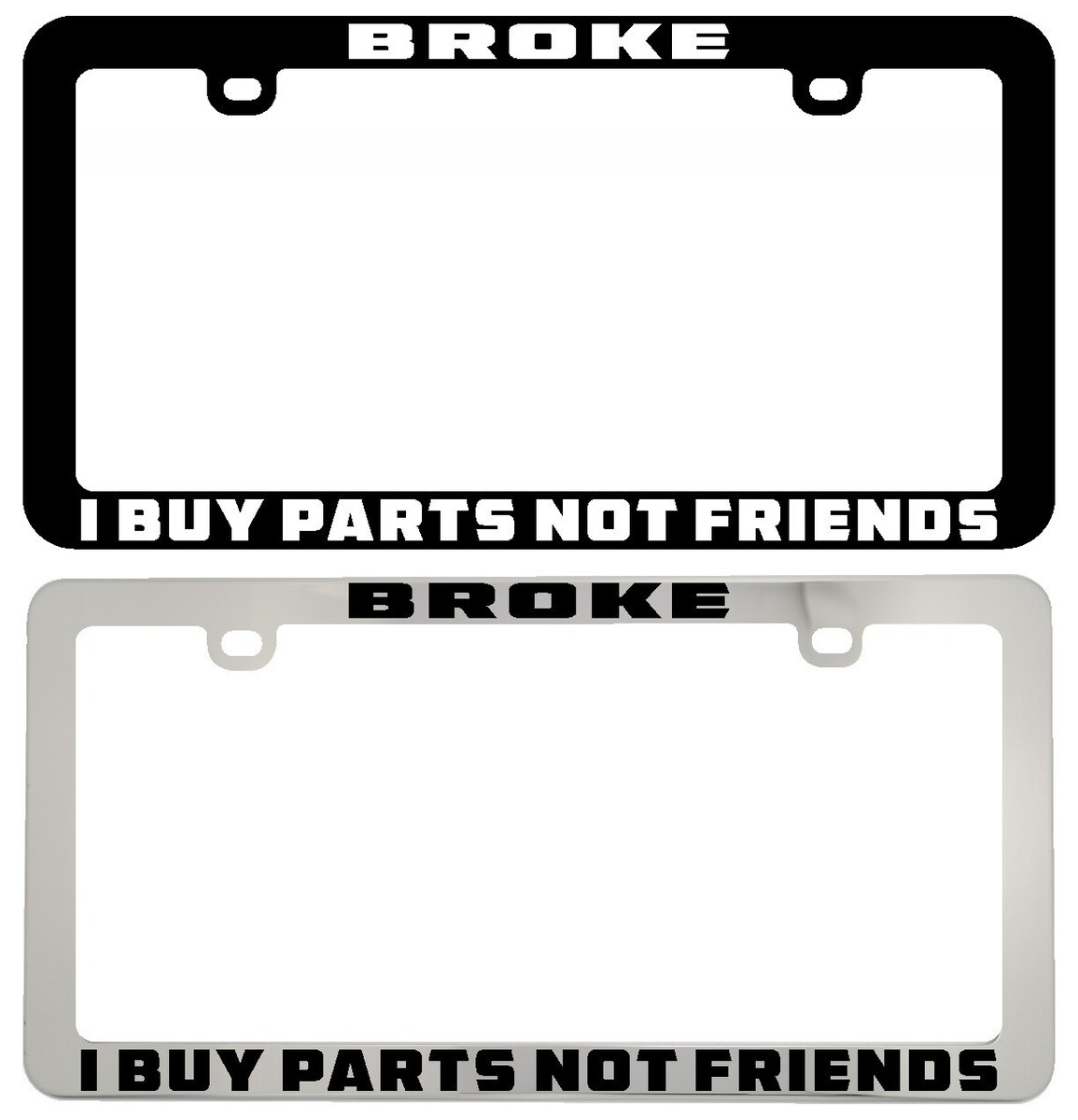 BROKE I BUY PARTS NOT FRIENDS Plastic Metal Legal License Plate Frame Print UV