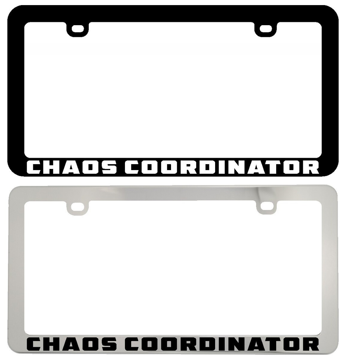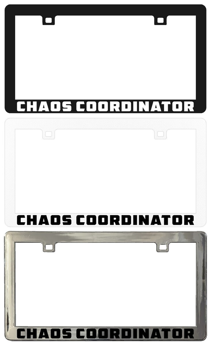 CHAOS COORDINATOR Funny Humor Custom Plastic Metal Legal License Plate Frame