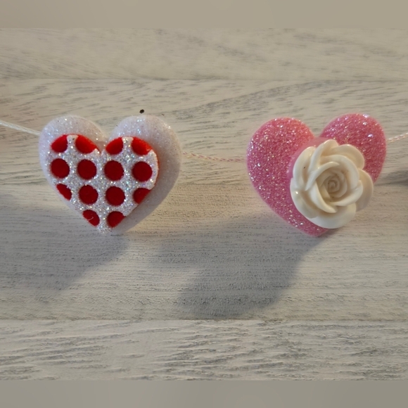Festive Valentine's Day Mini Garland Hearts Pink Red White Roses Decor Rustic Country Home Office Mantel Banner Collectable OOAK