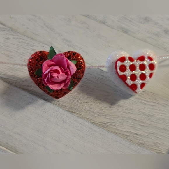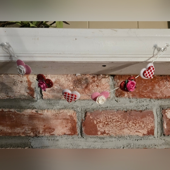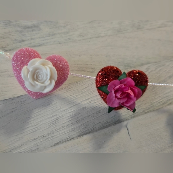 Festive Valentine's Day Mini Garland Hearts Pink Red White Roses Banner OOAK