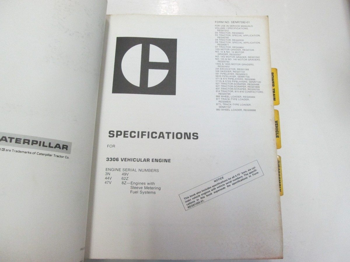 CATERPILLAR 14G MOTOR GRADER 3306 SPECIFICATIONS DIRECT ENGINE SERVICE MANUAL STAINED