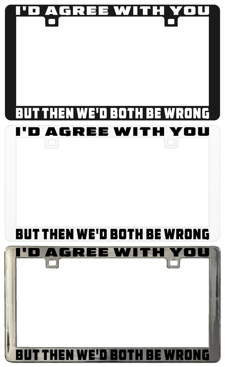 I'D AGREE WITH YOU BUT THEN WE'D WRONG Plastic/Metal Legal License Plate Frame