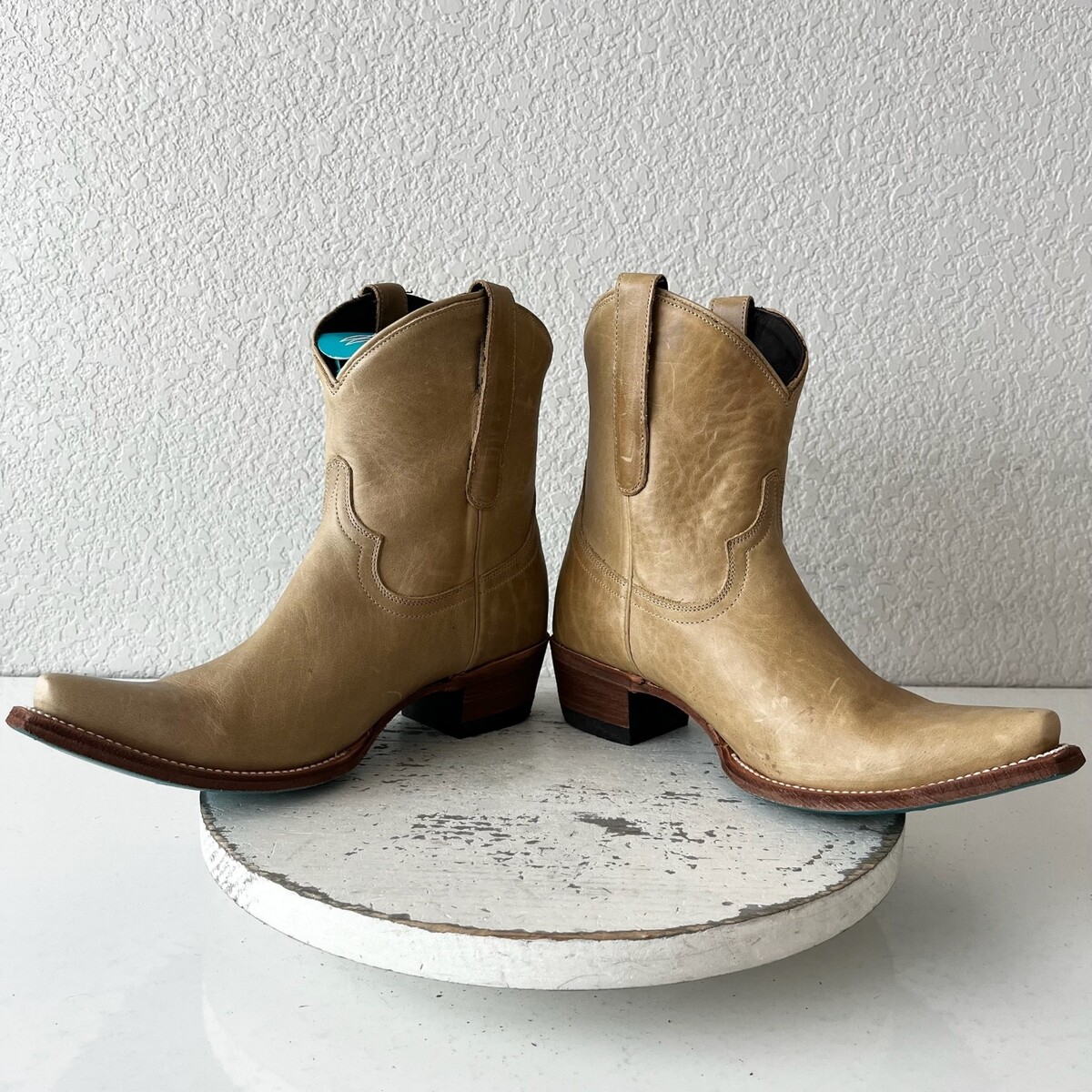 Lane EMMA JANE Womens Cowboy Booties in Butterscotch Leather with a Western Snip Toe and Short Ankle Shaft