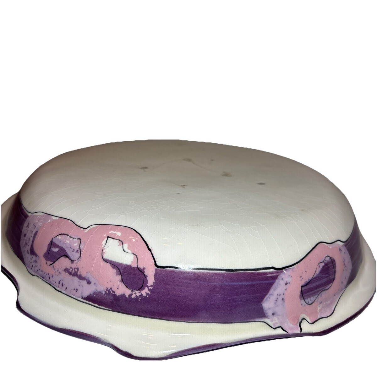 NEW (Cracks/Smudges As Shown) Large Glass Abstract Multicolor Bowl, ~12 in.