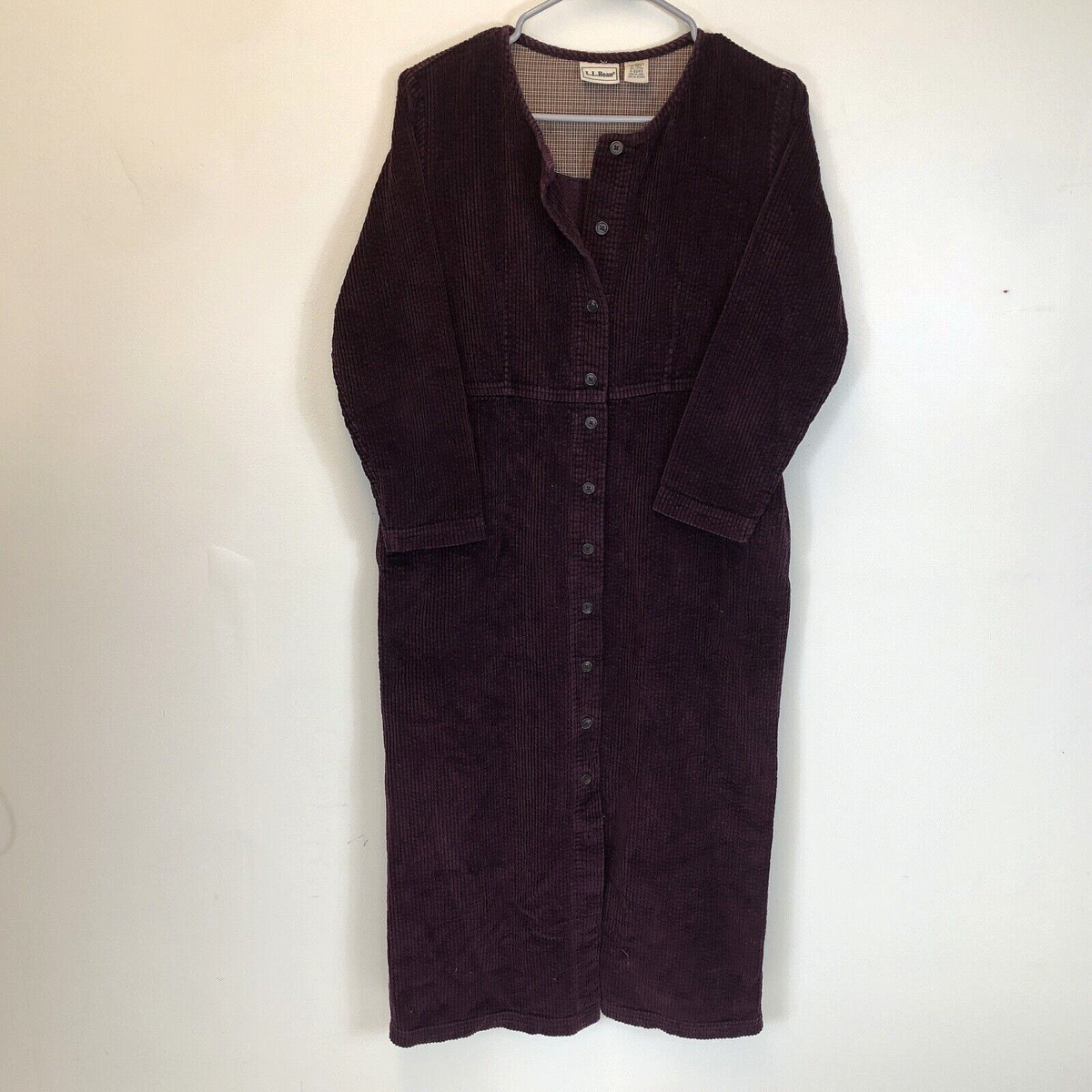 L.L. Bean Womens Brown Corduroy Button Front Collarless Dress
