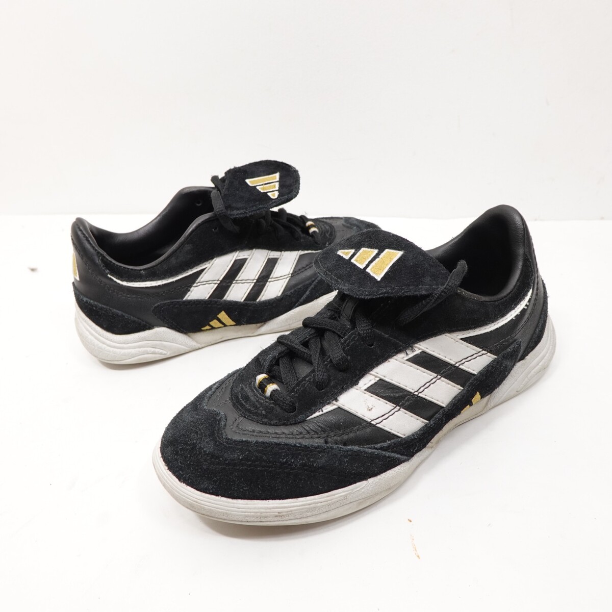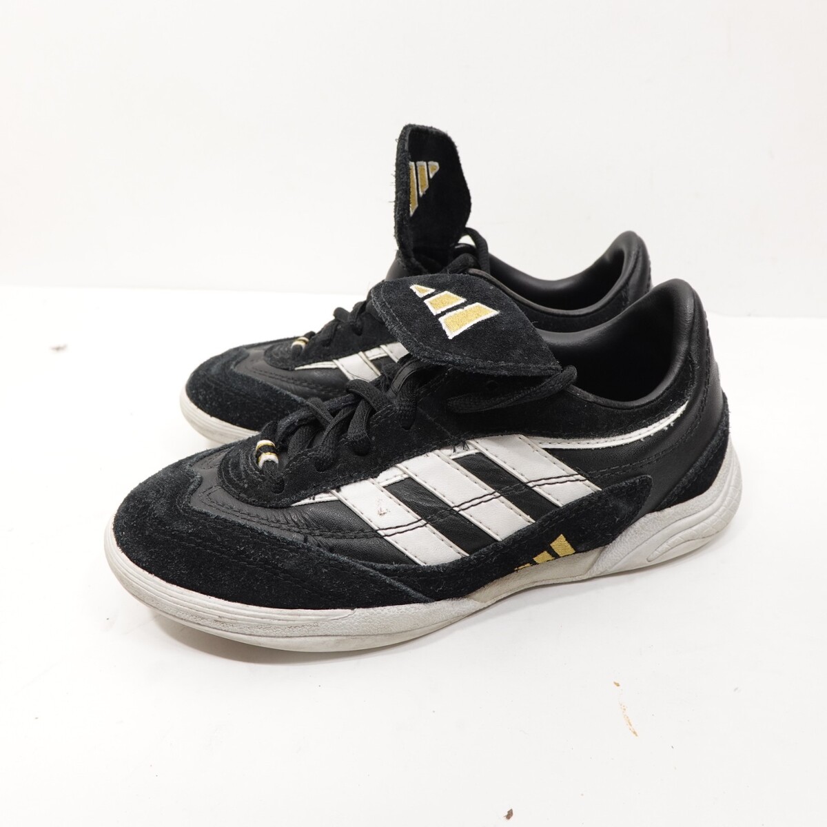 Adidas Ultranova Jr Indoor Soccer Shoes Black White Gold Art 032587 Size 2.5 VTG