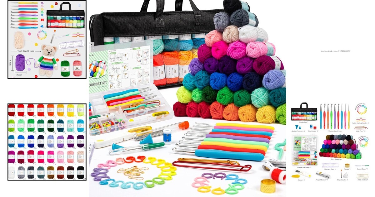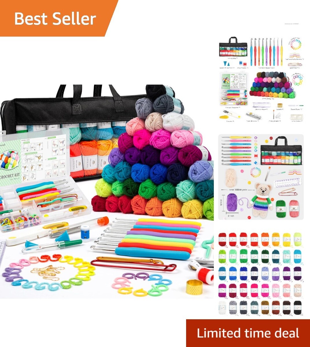 1600 Yards of Vibrant Yarn: 113-Piece Crochet Kit with Ergonomic Hooks & More